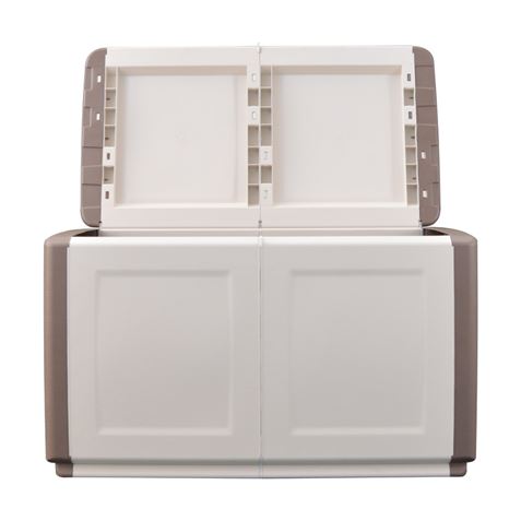 • Baúl de gran capacidad fabricado en polipropileno, en colores ivory y taupe